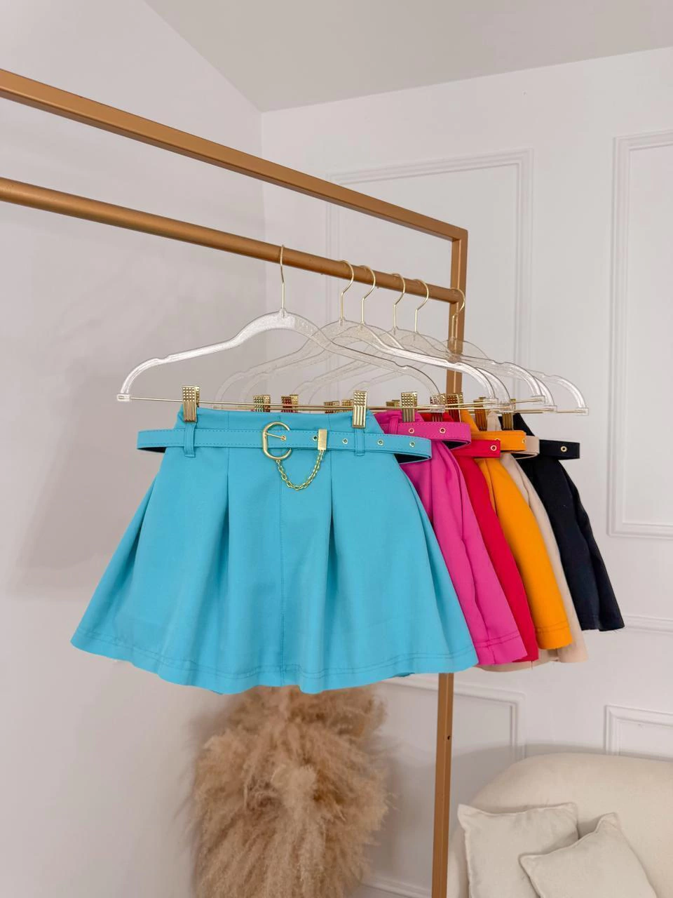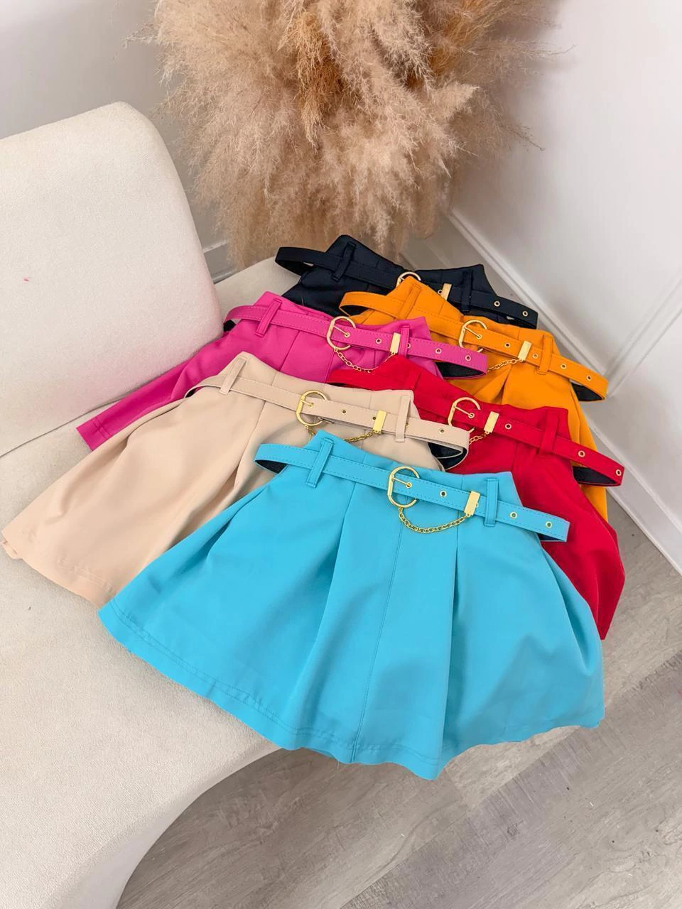✔️ Cinto forrado no mesmo tecido e cor do short saia, garantindo um visual elegante e harmônico