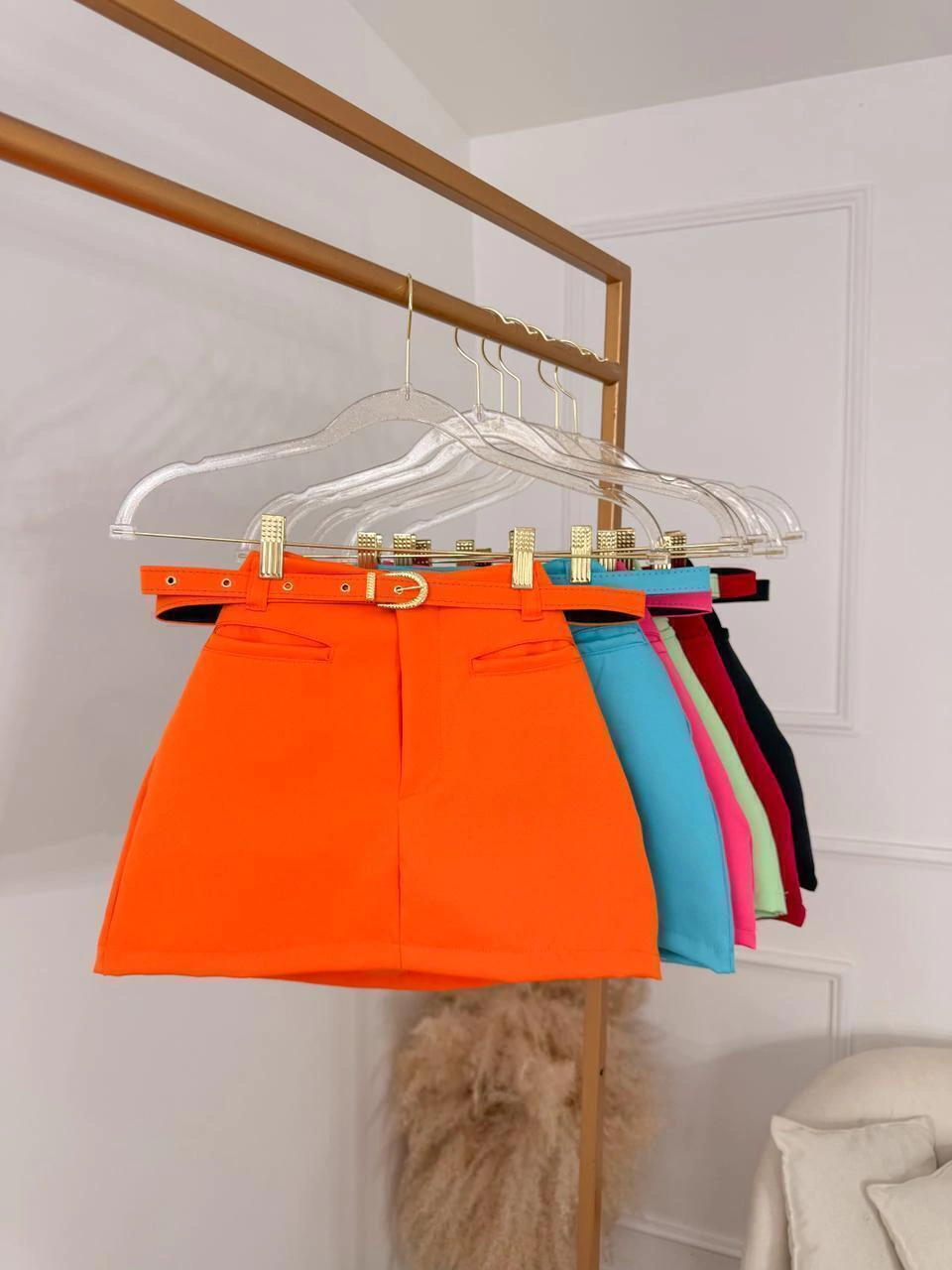 Short saia em alfaiataria encorpada, com caimento impecável e toque de praticidade.